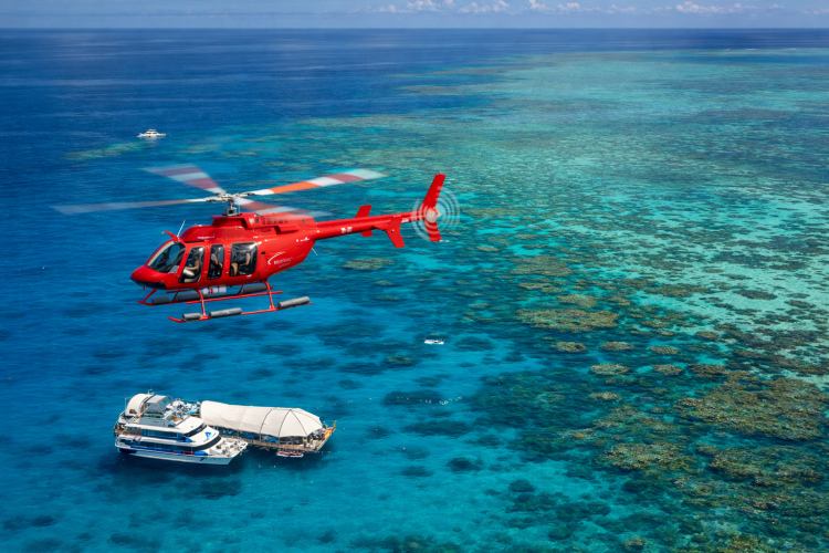 Fly between Cairns and Moore Reef by helicopter for sweeping reef and coastline views, with the option to cruise one way on a fast catamaran.