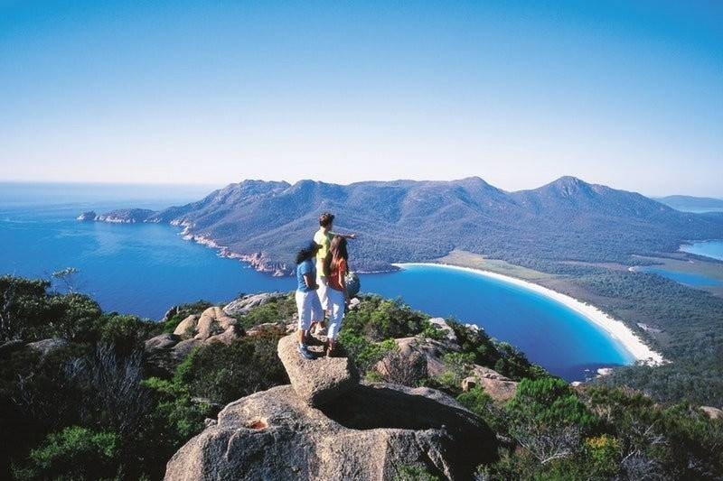 Guests who choose the shorter walk return from the lookout with the guide and visit other parts of Freycinet National Park. Stops can include Honeymoon Bay and Cape Tourville Lighthouse.